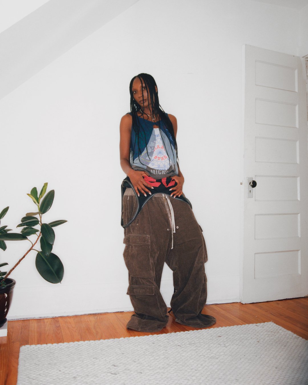 Teesh wears archive Issey Miyake & Comme des Garçons Homme Plus